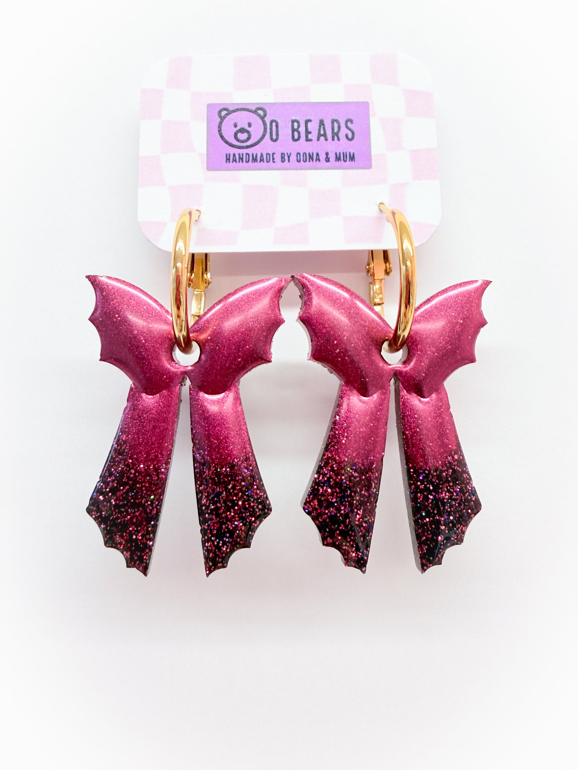 The Bat Bows are made using metallic dark pink tones with black glittery undertones.