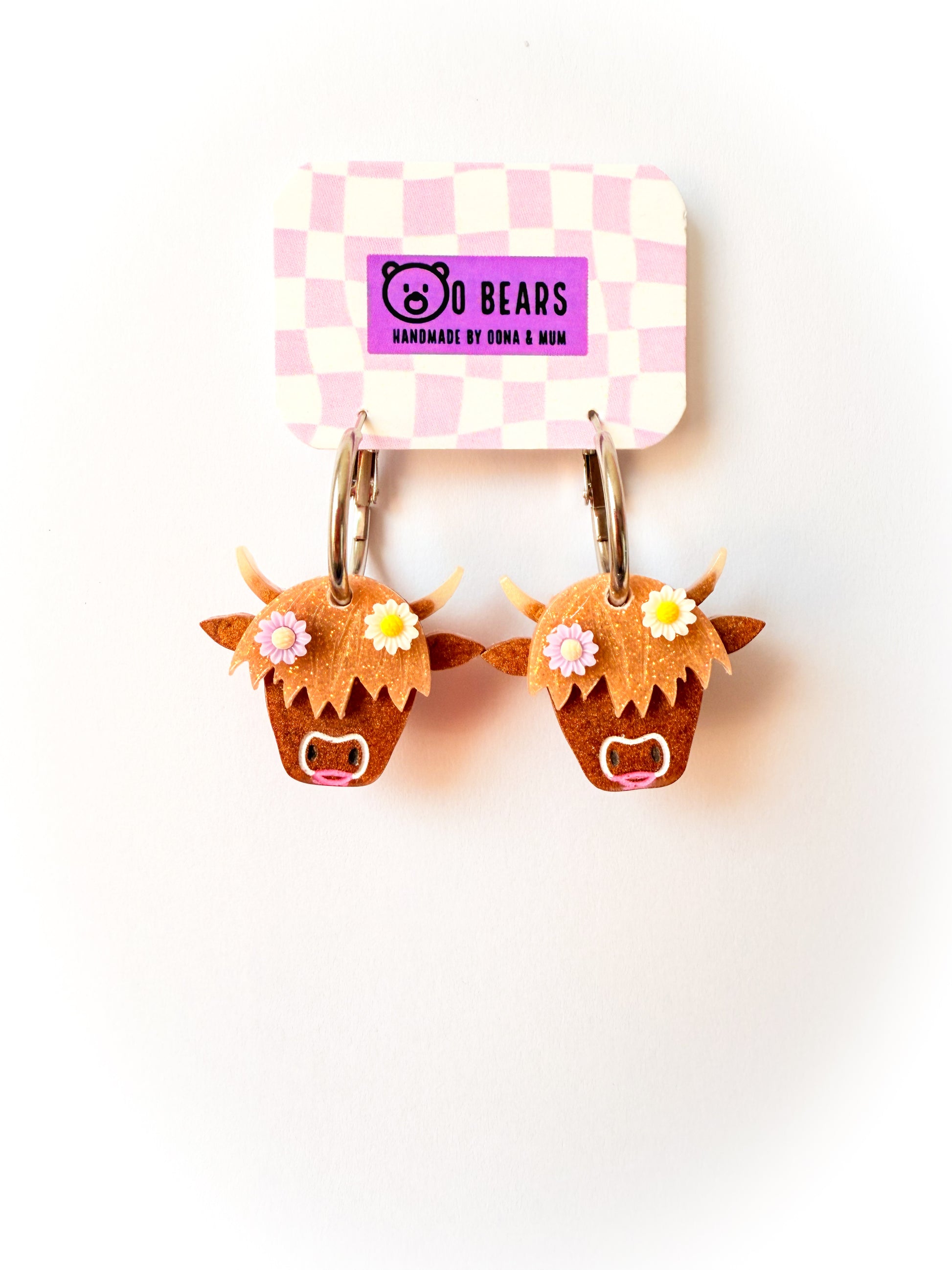 Expertly crafted, these Highland Cow Hoops are the perfect addition to any jewelry collection. Made with precision and care, these earrings feature cute cow designs that will add a touch of charm to any outfit. Elevate your style with these unique and adorable earrings.