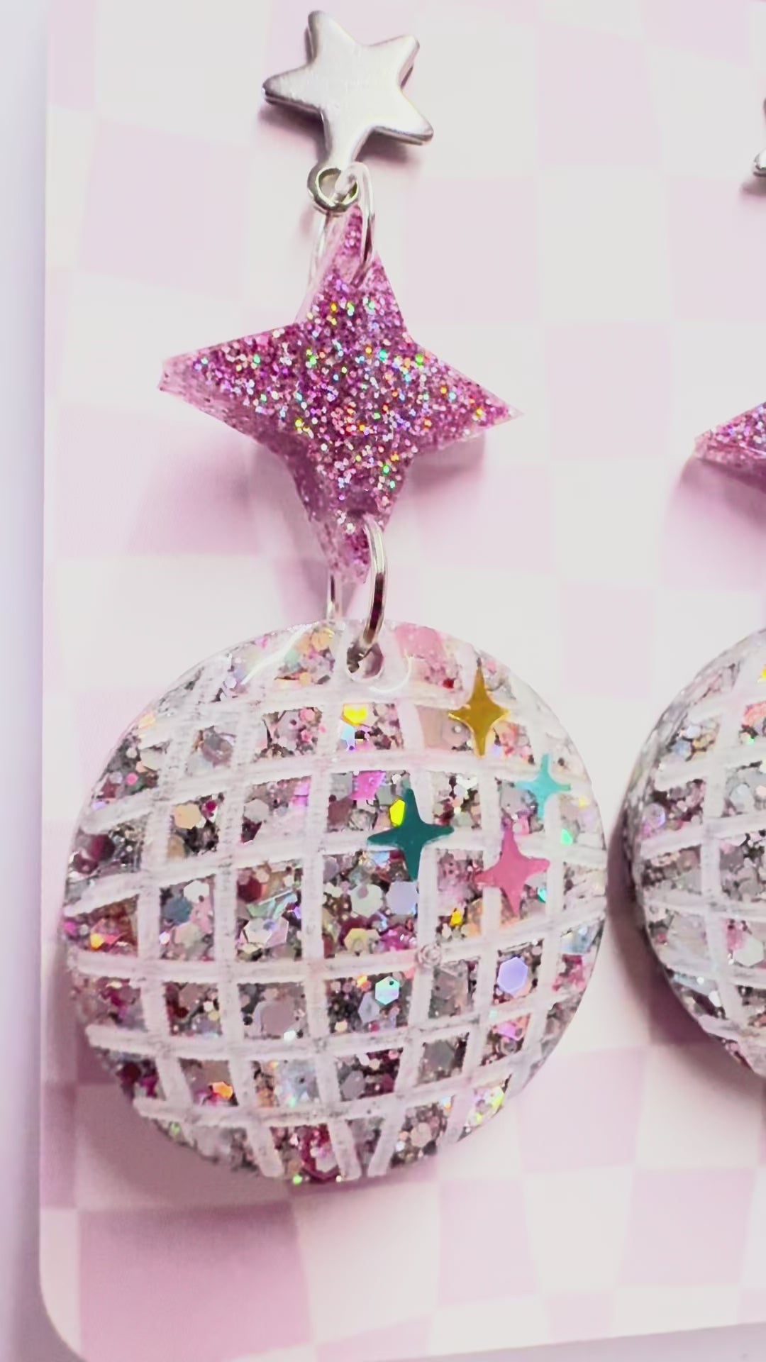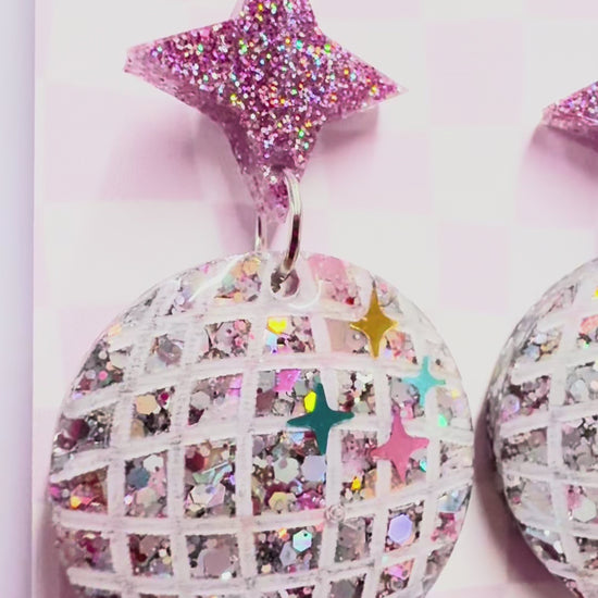 These Disco balls are packed with sparkle! Finished with a stainless steel star earring finding.