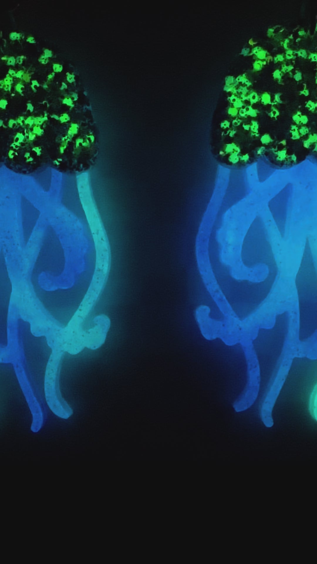 These awesome Jellyfish dangle earrings sparkle by day glow at night!!