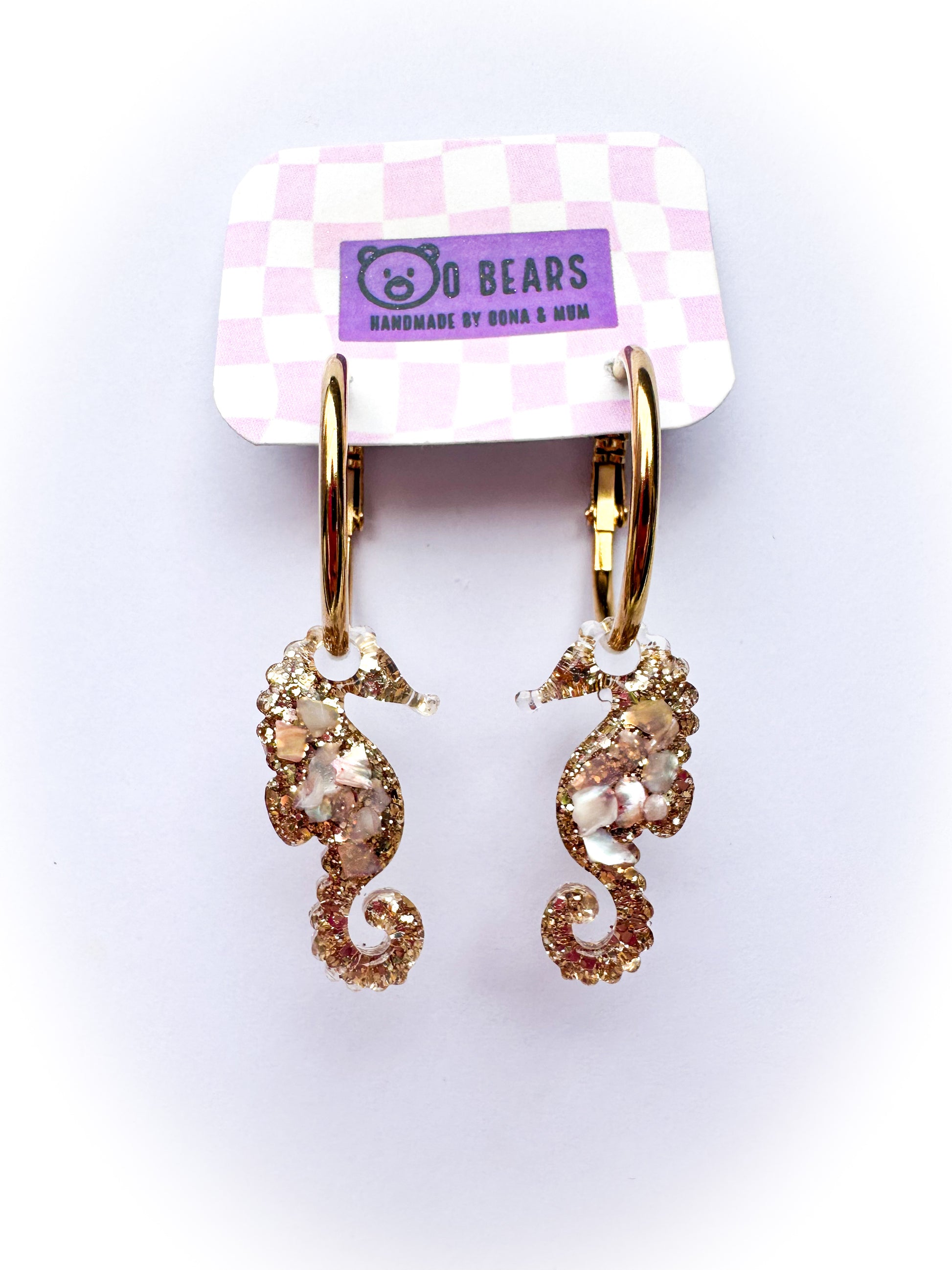 These beautiful golden seahorses have been made using real shells and super sparkly glitter.