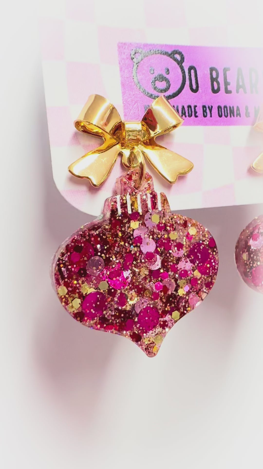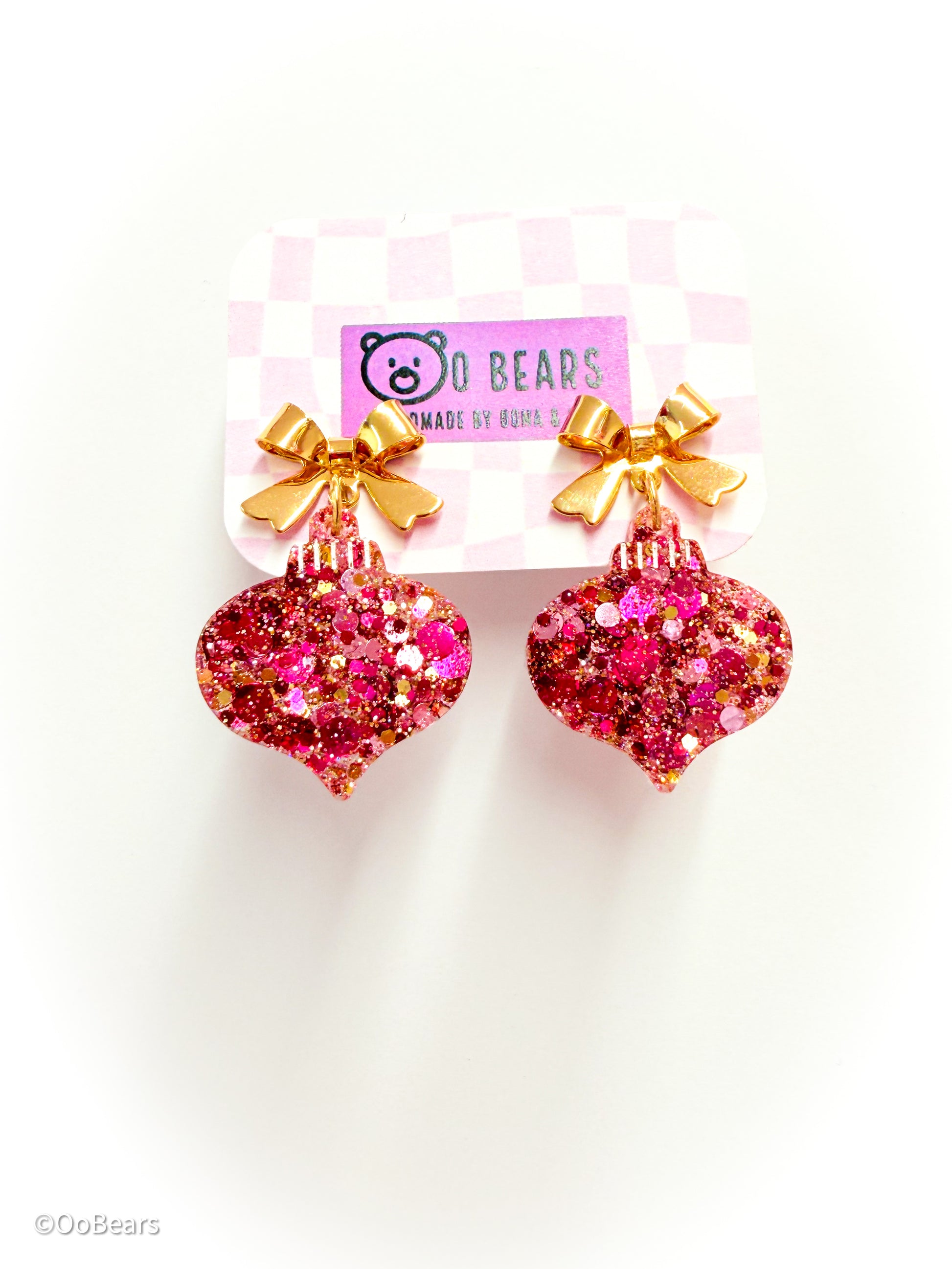 Made using sparkling resin glitter with plated bows with 925 silver stud pins.
