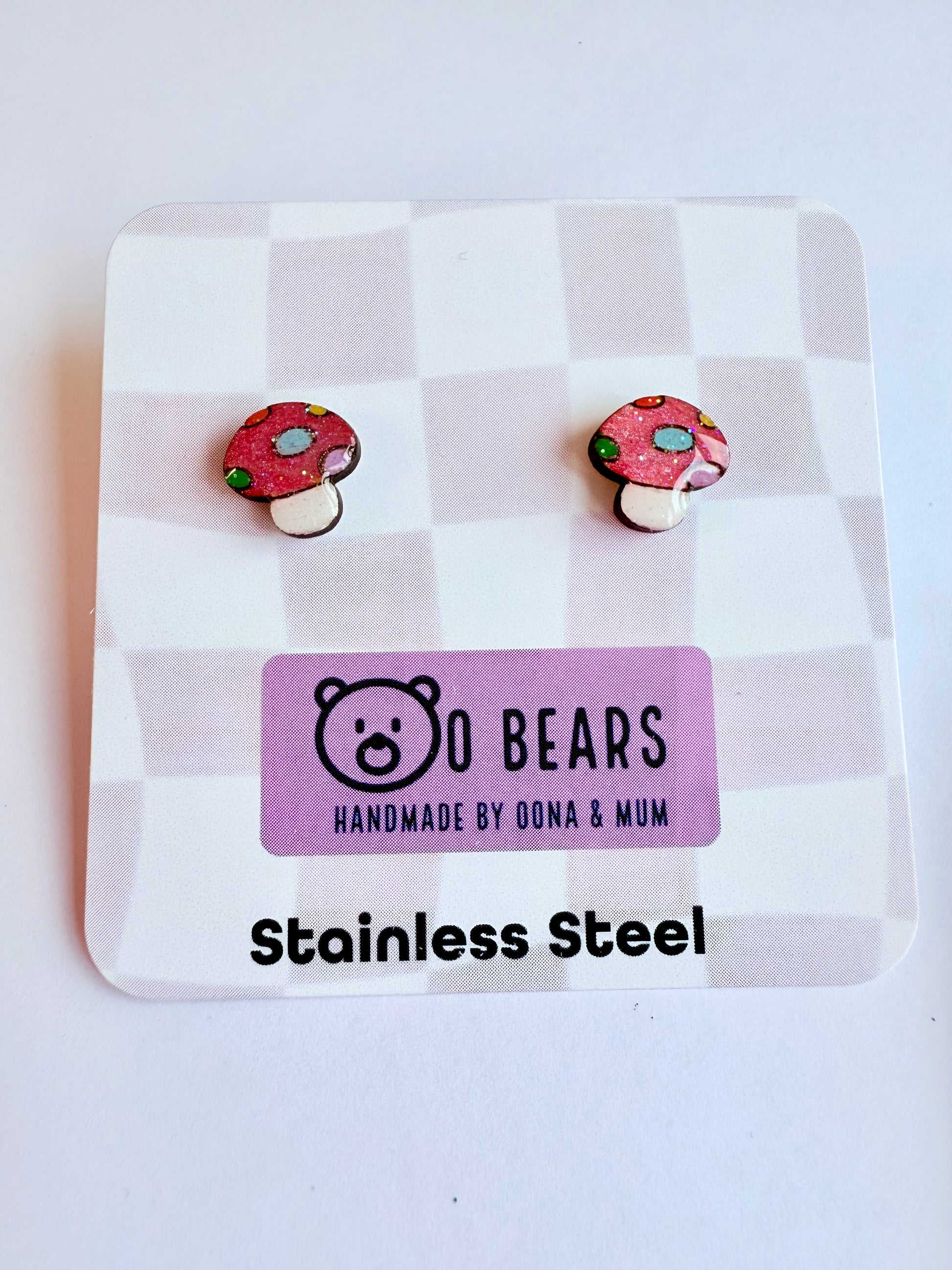 Made using wood, hand painted and finished with a glitter resin. With a stainless steel stud